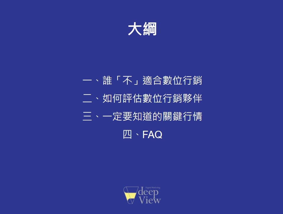 這次受台北創新網路扶輪社之邀來演講關於數位行銷的知識,原先的設定是關於數位行銷的新知與趨勢,但後續了解過後,其實創新網路社的社友對於數位行銷已經有一定的了解,且部分也有與數位行銷夥伴配合的經驗,但是有些人的合作經驗不太愉快,甚至不太了解該如何評估,才能去判斷這些夥伴做的好或不好,巧合的是,大概有一半找上我們的客戶,也都是因為跟前一任數位行銷夥伴有不愉快的合作經驗跳過來的。