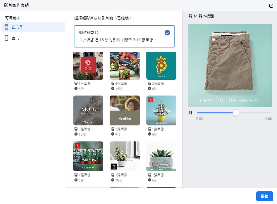 不過也不需要太過擔心,在廣告的最後一步會出現設定預覽,已確認最終呈現方式,如果發現素材不合適也可以做替換。