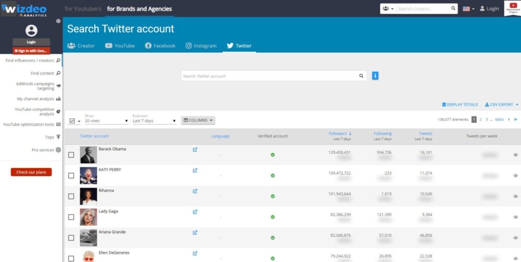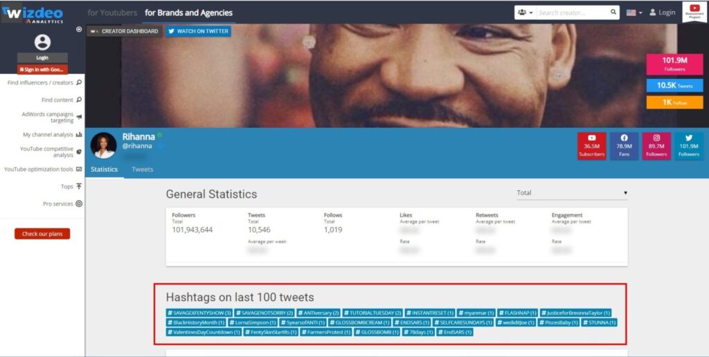 Wizdeo 是一款以歐美地區為主的網紅 KOL 分析工具,其涵蓋的社群平台也多出了 Twitter,非常適合想將品牌推廣至歐美日地區的使用者。但即便如此,它仍然可以搜尋到台灣地區的名單,且獨特的 Hashtags 分析系統,特別符合我們檢視網紅 KOL 與品牌契合度的需求。