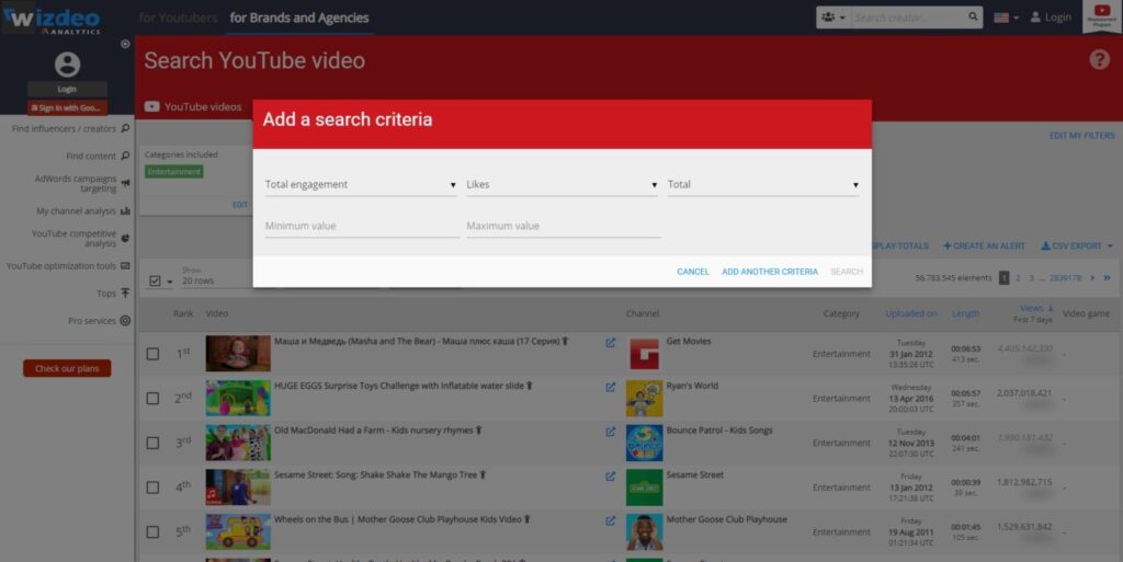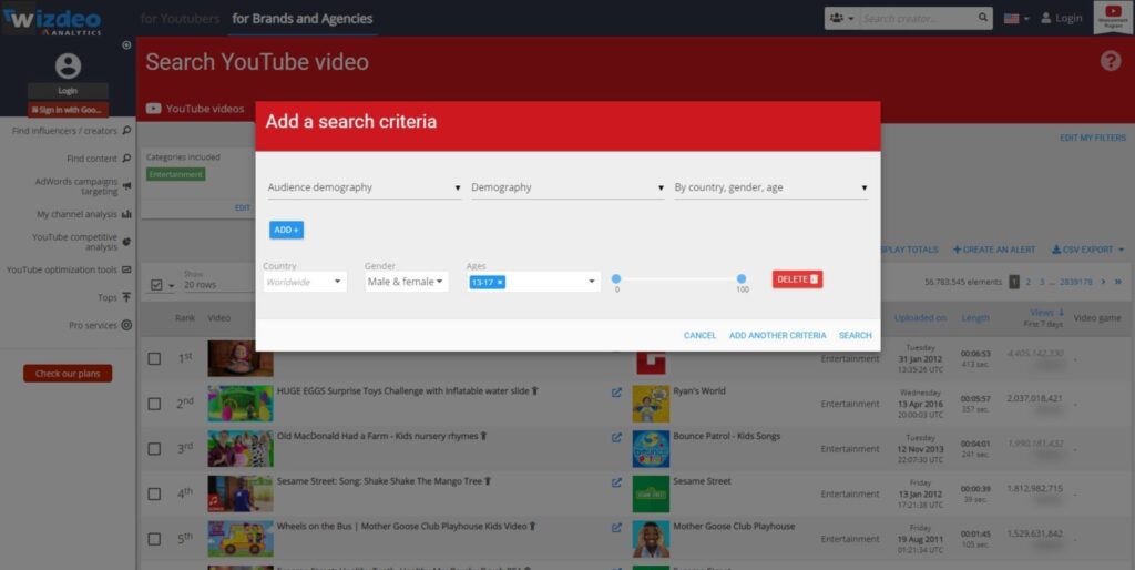 而 Wizdeo 還有一個相當聰明的功能,就是可以直接利用「你希望看到的內容」來搜尋恰當的網紅 KOL,在這邊你可以透過系統來設置非常、非常多的條件(可說是所有相似分析工具中,設定功能最為高階的),幾乎所有你想得到的變數都予以自定義,對於想精準搜尋、一次到位的人來說,真的是不二選擇!