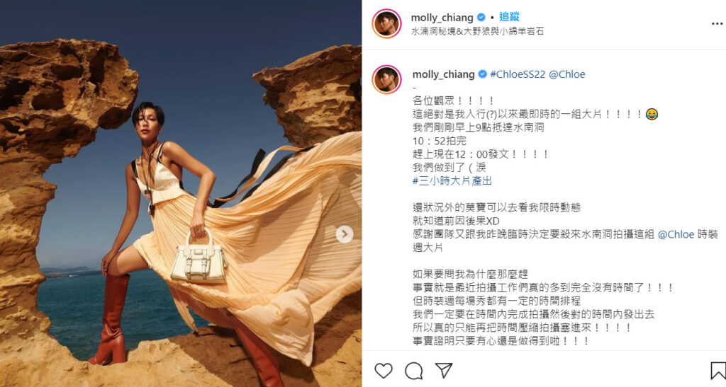 時尚圈正火紅的KOL莫莉,擁有75萬粉絲,成為許多精品爭搶合作的對象。