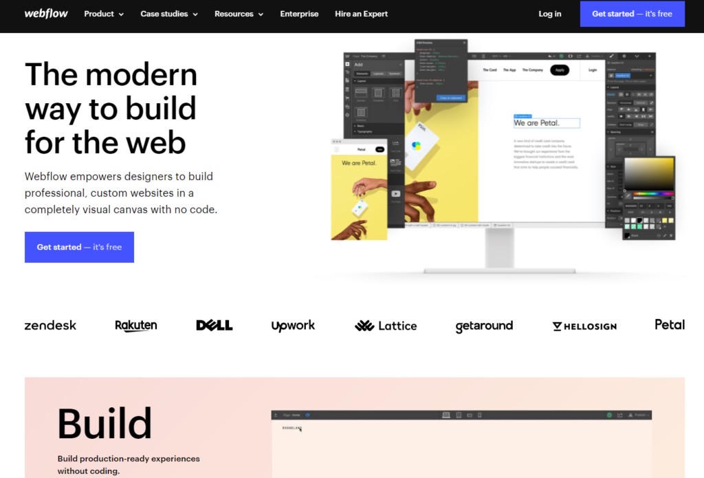 Webflow 是一個 SaaS 應用程序,它允許設計人員使用基於瀏覽器的可視化編輯軟件構建響應式網站。當設計人員使用該工具時,Webflow 會自動生成 HTML、CSS 和 JavaScript。Webflow 的使用者定位介在「外行平面設計師」及「專業網站工程師」之間,相較其他架站軟體,Webflow 支援的功能繁多,大至網站版型 RWD、小至游標移到圖上時會 Roll 的動畫選擇,全部都能隨心所欲地調整!( 想了解更多 )