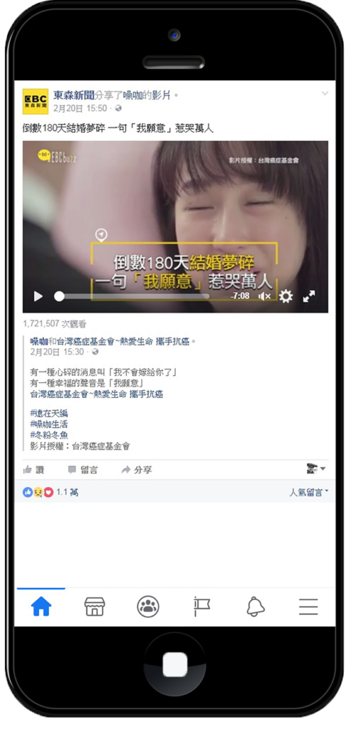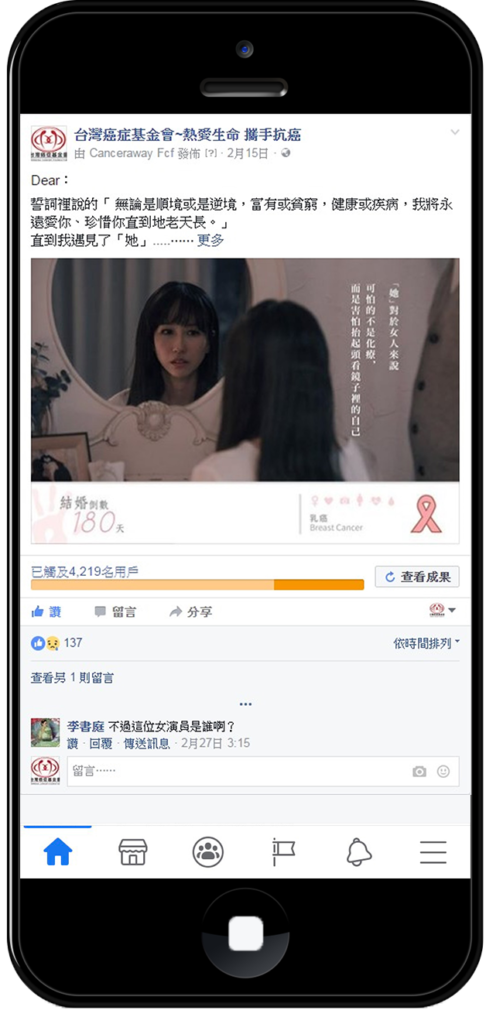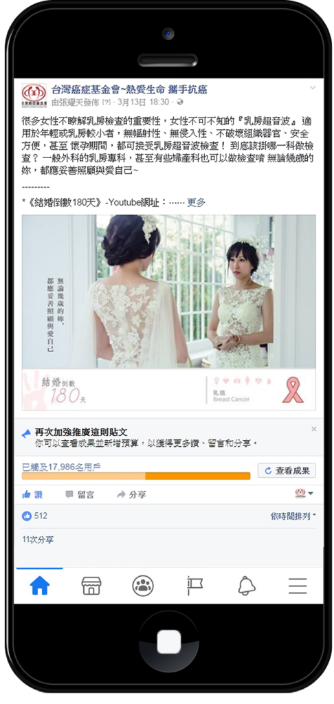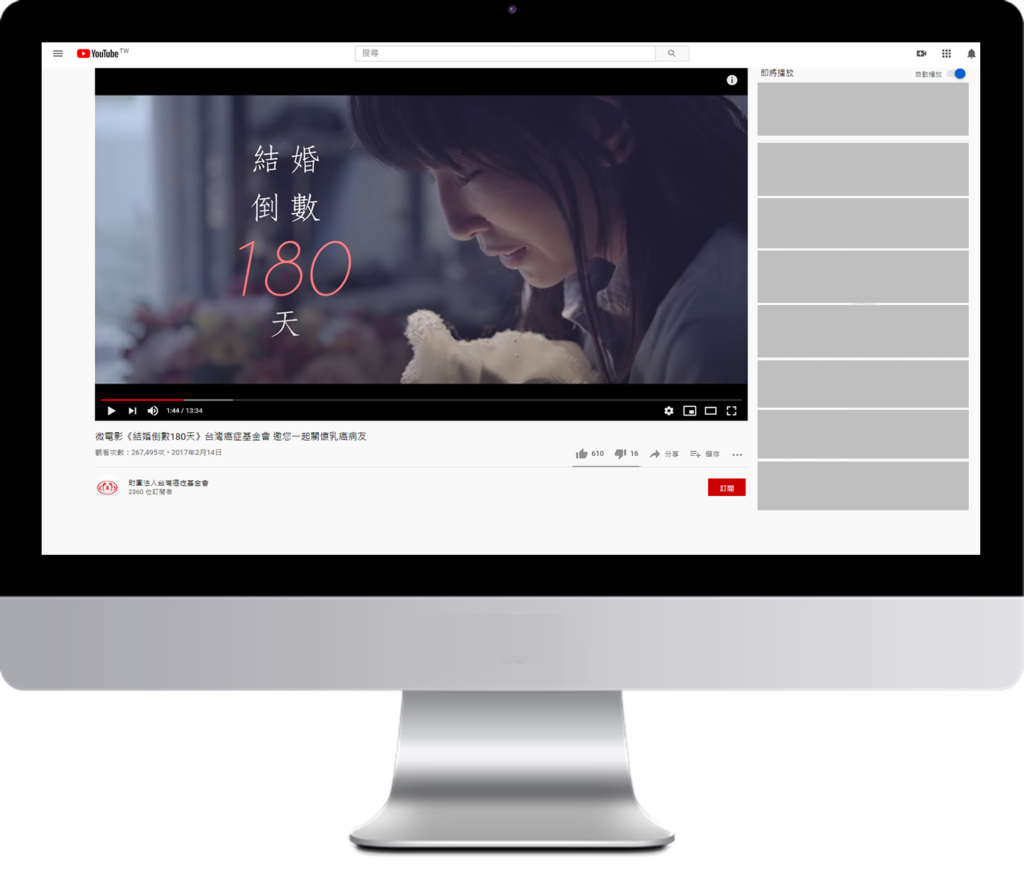 - Youtube 廣告:為影片帶來大量流量、提升曝光度,觀看次數於一個月超過 22 萬次,成功吸引到大眾關注此癌症議題。