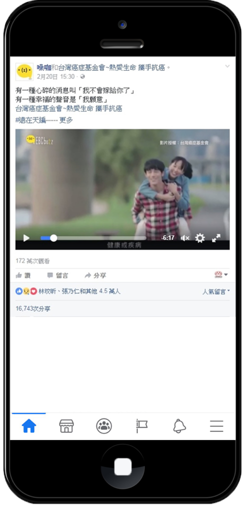 - 微電影分享:藉由每週不間斷的發布議題相關貼文,加深曝光度及社群分享效益。