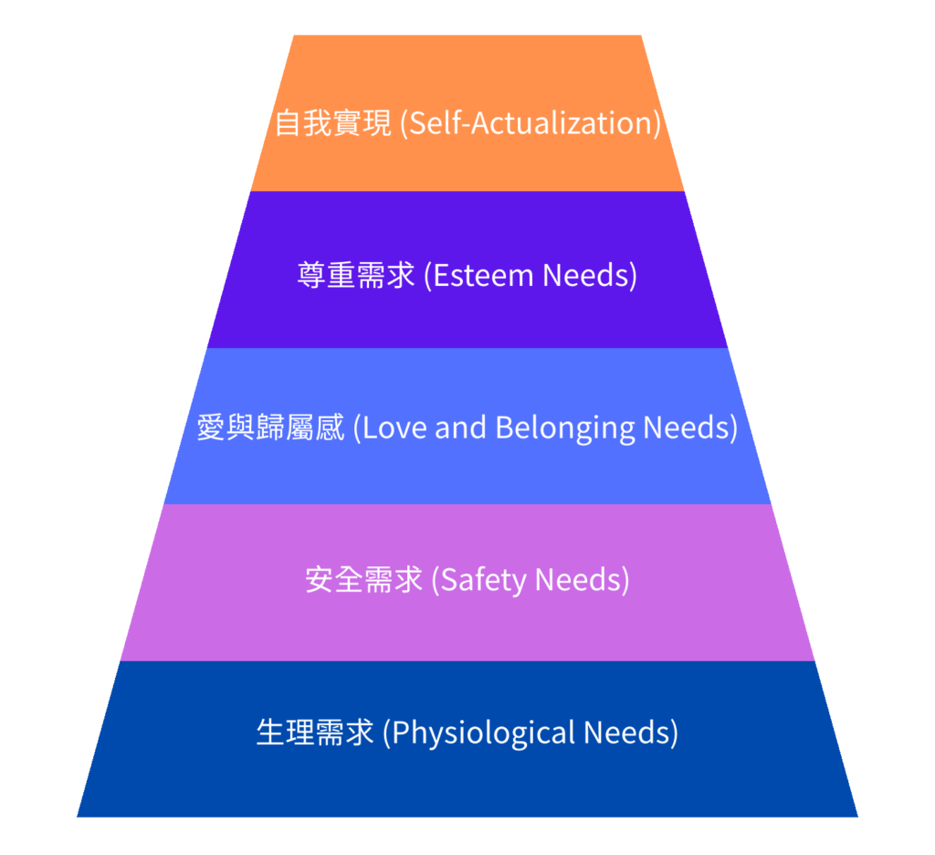 亞伯拉罕·馬斯洛為美國著名的心理學家,他於1943年提出的需求層次理論,將人類的需求由低到高分為五個層次,如同一個階梯,人們會優先滿足較低層次的需求,才會進一步追求更高層次的需求。這五個層次分別是: